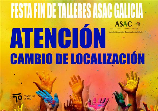 Bos días. Por motivos de metereología vémonos obrigados a cambiar o lugar onde se celebrará a festa fin de talleres das familias de ASAC Galicia. Este cambio non afecta á ...