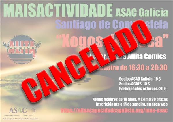 Socios de ASAC Galicia. Por problemas en las fechas nos hemos visto obligados a cancelar esta Mais Actividade. Esperamos a lo largo del año, poder recuperar esta actividad. Saludos. ...