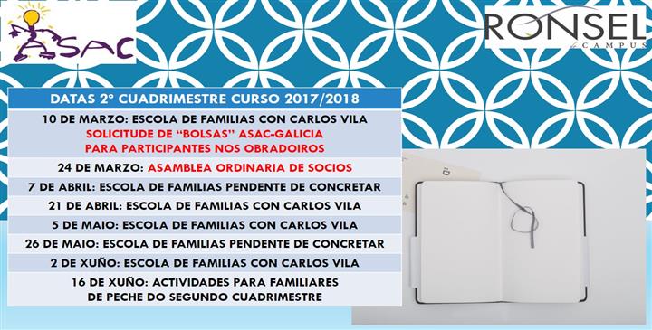 CANDO NOS VOLTAMOS A VER? CANDO HAI ESCOLA DE FAMILIAS? CANDO SE SOLICITAN AS BECAS ASAC-GALICIA ANO 2018?