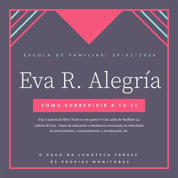 A autora do libro "A mí no me parece" e da canle de YouTube La cabeza de Eva será a ponente da Escola de Familias do 29 de febreiro de 2020.