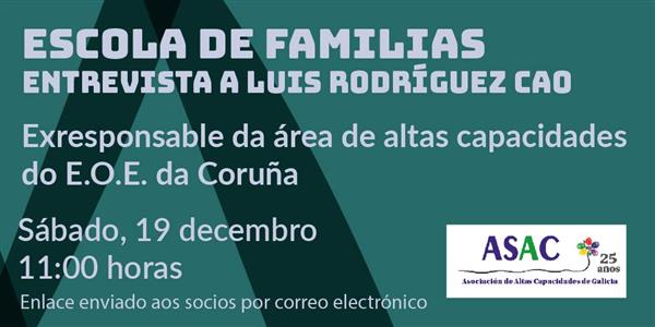 Na escola de familias desde sábado entrevistaremos a Luis Rodríguez Cao, Exresponsable da ...